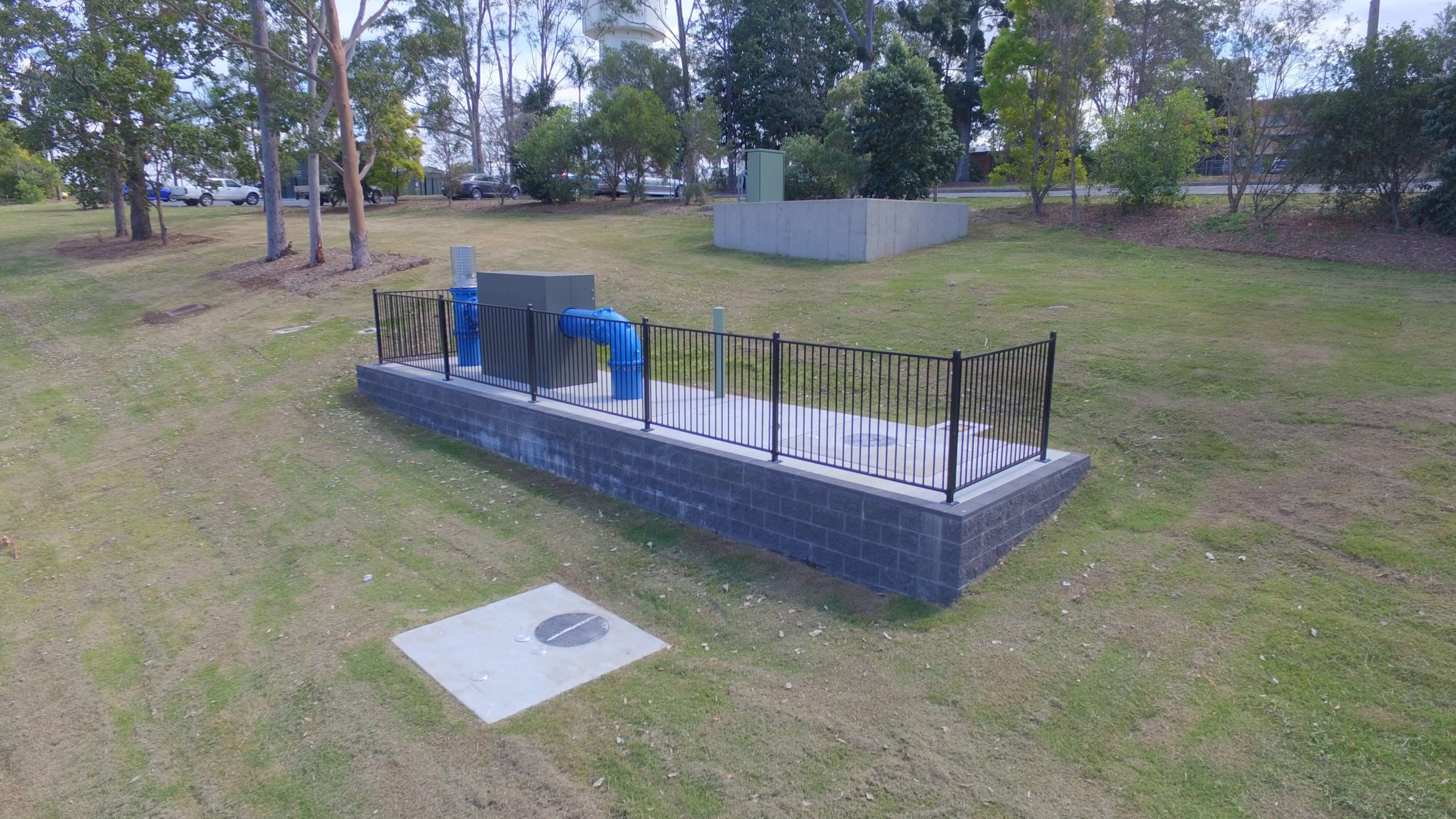 In addition to the construction of a new WPS to feed the Petrie elevated tower and the associated pipework arrangement, the works also included 12 live cut-ins to the existing network on mains varying in size from 375mm to 600mm diameter, of various pipe materials including asbestos, DICL and MSCL.