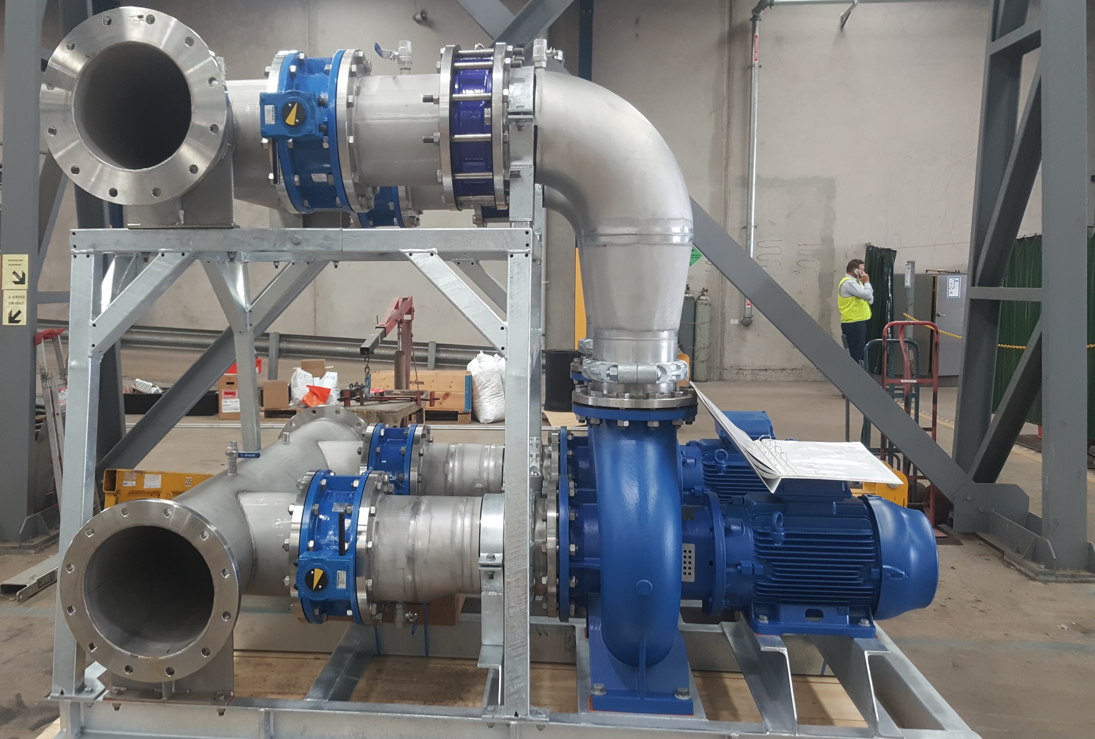 - The works also included constructing flanged large diameter pipework to millimetre accuracy to connect the new and existing mains in the steep sloping ground.